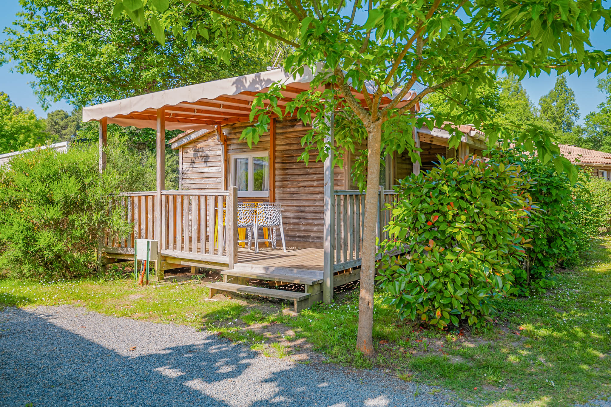 Mobil-homes confort, premium ou encore chalets vous attendent entre vignobles et océan, sur le site arboré du Paradis.